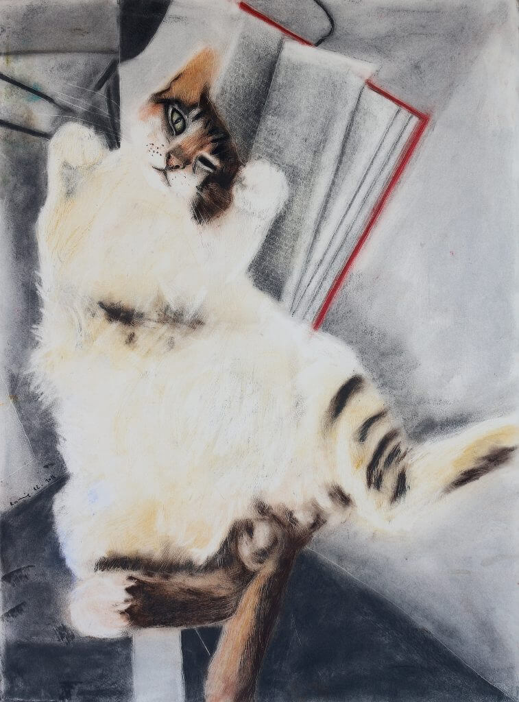 The most comprehensive part of the exhibition, Irgat (Laborer), is a journal of the artist’s most recent period. Her bird’s-eye view within clouds of Bey Mountains in Malatya; Yanni, her cat; the meaning of simplicity; non-social gender roles; journeys; the ballerina-cat at Aya Yorgi in Istanbul; toss-pillow bride in Famagusta; the escape of Nazım Hikmet’s grandfather to Kız Kulesi (Maiden’s Tower); stinging nettles lush green; and the soft concrete waving in Berlin.